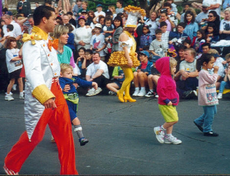 James and Mum doing Magic Kingdom Parade - Jan 1998