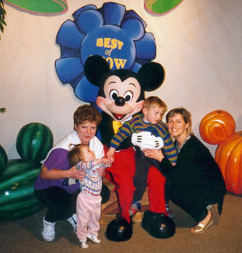 Auntie Debbie, Mum, James and Georgia with Mickey - Jan 1998