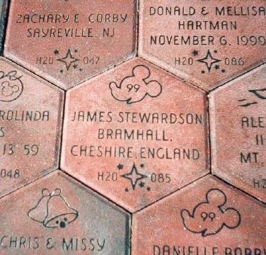 James name in stone at Magic Kingdom in Florida, present for James from Auntie Debbie and Peter - Dec 1999